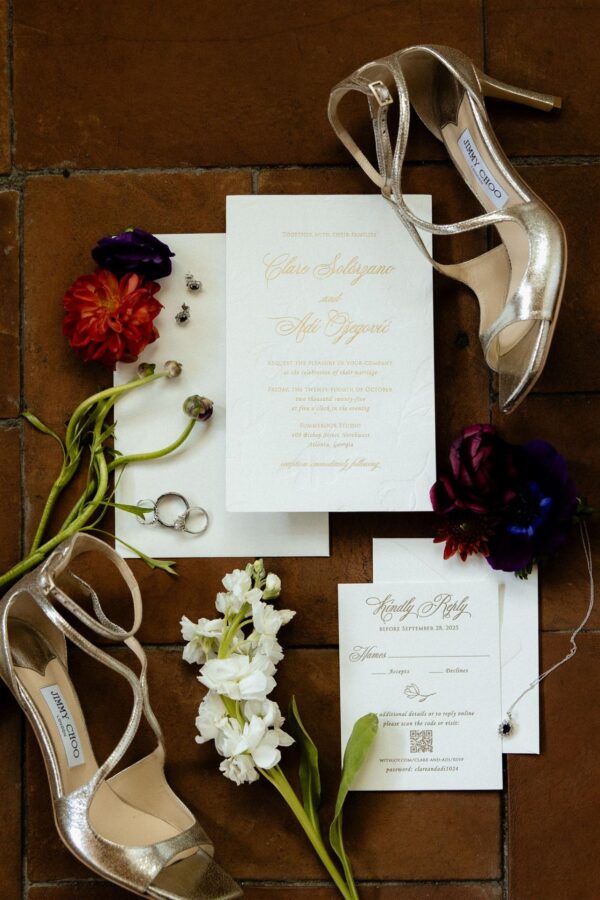 Every element was chosen to complement Clare and Adi’s vision: muted drama, soft warmth, and natural elegance.